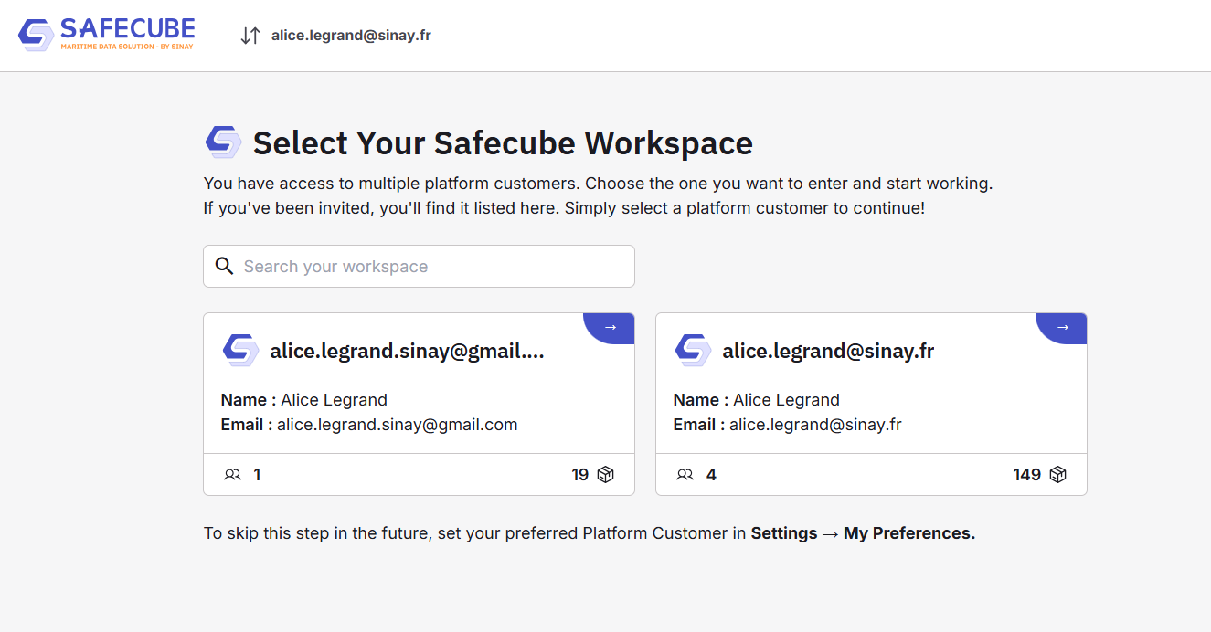 Every time I connect, I am prompted to select a Safecube workspace before proceeding. Could you help me understand why this step is necessary? Additionally, is there a way to bypass this page and go directly to my workspace?